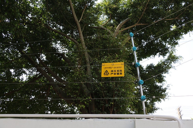來利眼鏡脈沖電子圍欄防盜系統安裝 總周長1500米,線管盡量靠地平線固定,線路美觀,全部打卡碼,安裝警示牌加以輔佐警示。脈沖電子圍欄安裝穩定性好,安全,誤報率低,以后的日常維護也方便。